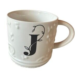 NEW Modern Expressions Letter J Monogrammed 14.2 Ounce Mug White Matte Textured Vine Design. Microwave and dishwasher safe. Stored in a smoke-free environment.