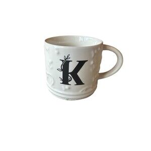 NEW Modern Expressions Letter K Monogrammed 14.2 Ounce Mug White Matte Textured Vine Design. Microwave and dishwasher safe. Stored in a smoke-free environment.