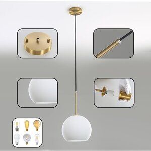 NEW Modern Globe Pendant Light Fixture Mid-Century Glass Ceiling Gold White