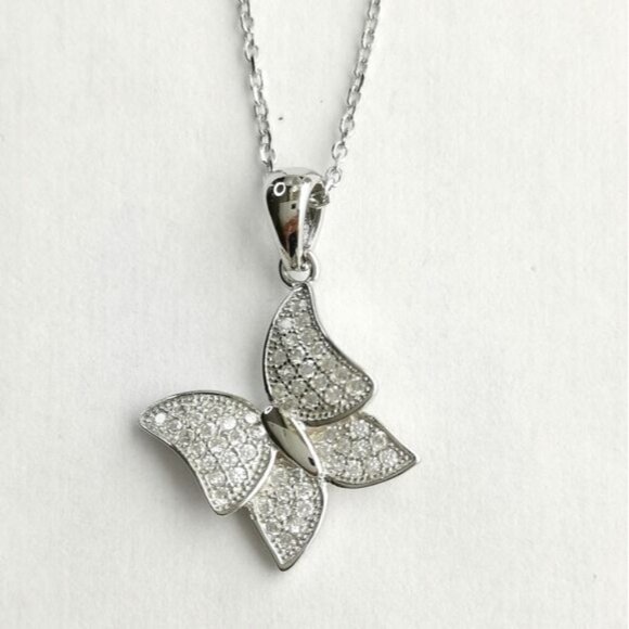 NEW Modern butterfly pave cz sterling silver pendant necklace