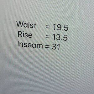Waist = 19.5 Inches, Rise = 13.5 Inches, Inseam = 31 Inches