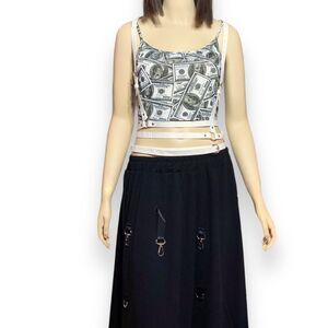Summer strap top white gray graphic top, Benjamin’s money crop strap tank top!