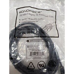 This Monoprice Booted Cat 5E Ethernet Patch Cord in black is a high-quality networking cable that is perfect for connecting devices within a network. With a length of 10 ft, it provides ample reach for easy connectivity. The cable is designed to support voice and data transmission and features a Cat 5e connector on one end, making it compatible with most Ethernet networks. The black color of the cable is sleek and adds a professional touch to any network setup. It is a great choice for those who are looking for a reliable and efficient networking cable.