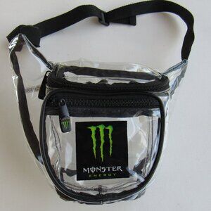 NEW Monster Energy Black Hat Cap and Clear Fanny Pack Waist Bag Bandana Set
