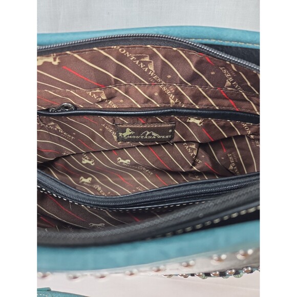 NEW Montana West Concealed Carry bag purse. Turquoise and black embossed faux leather. Whipstitch details and studs with great patina.