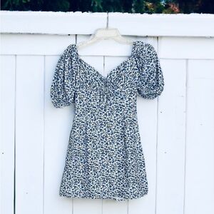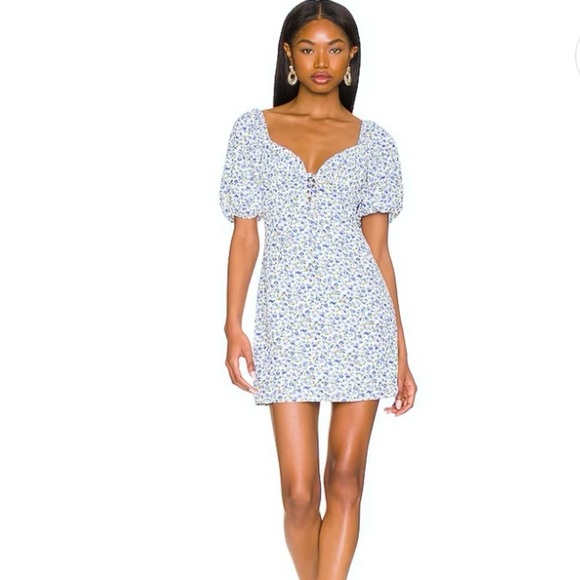 NEW More To Come Mini Dress Sherrie Puff Sleeves Bare Back Blue Floral