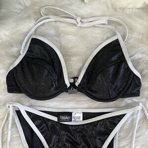 New without tags Mossimo High Shine Two-Tone Black and White Contrast Lightly Padded Push-Up Swimwear Bathing Suit Bikini Top. Women’s Size XS