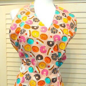 Handmade mother and daughter apron set in delicious donut fabric. Custom pockets, and lovely lining fabric.