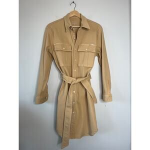 NEW Mother Cadet Breast Pockets Button Denim Mini Shirt Dress Brown Size: Medium