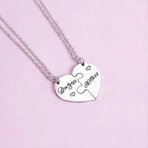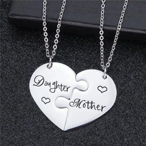 ~NEW Silver "Mother" "Daughter" Embossed Puzzle Heart Pendant Necklaces