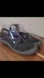 Dark Gray slip on sporty flats with sling back stretch strap. X cross upper straps. Perforated flower design. Cushioned footbed.