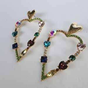 Amazing embellished heart earrings. Multi stone / crystal decorates the open heart shape. With these pair you won't stop receiving compliments.