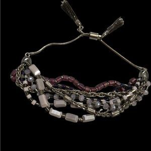 NEW Multi Strand Silver Tone Purple Slide Bracelet with Silver Gray Tassels