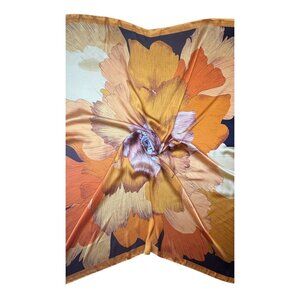 NEW Stunning Multicolor Bold Colorful Floral Mandarin Orange, Golds, Pale Pink Flower Printed Silky Fashion Scarf