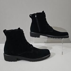 NEW Munro Finnley Ankle Bootie Womens 8 SUPER SLIM Black Suede Lace Up Comfort