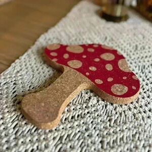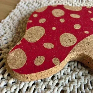 Pretty big mushroom shaped cork trivet. Red mushroom with “white” spots cork trivet.