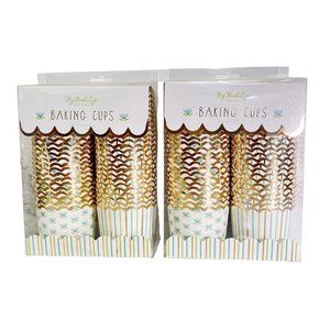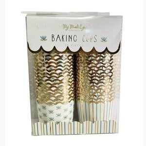 NEW My Minds Eye Gold Foiled Stripes and Floral Baking Cups, Green - 50 Count