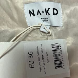 NEW NA-KD Women's Cream White Twill Oversized Button Blazer Coat Jacket Size 6