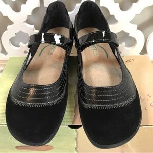 NEW/ NEW WITH BOX- NAOT MARY JANE NAO KIREI BLACK COMBO SUEDE PATENT LEATHER VELCRO CLOSE, SZ40 (US 9-9.5)