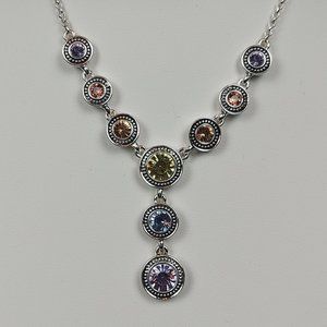 New Napier Silver Tone Multi-Color Crystal Y Drop Necklace and Earring Set. A Stunning Duo with 3 Sets of Matching Earrings. The Perfect Compliment to your favorite outfit for a Special Occasion or Evening Out. The Silver Tone Necklace is accented with Pastel Colored Crystals in Lavender, Pale Blue, Yellow, and Soft Pink. Measures approx. 20" Long with Drop at 1.5" and features a Lobster Clasp Closure. Three Sets of Silver Tone Stud Earrings in lavender, pale blue, and soft green. The Earrings are NWT (as pictured) and the Necklace is NWOT (never worn). ***Remember to Bundle & Save***