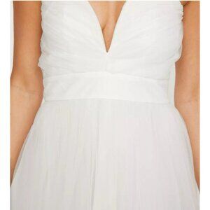 Description: This is a genuine Nasty Gal Tulle Bandeay Frill Hem Midi Dress. No rips, tears, marks, stains, flaws or defects. NO damages. The dress features bandeau sweetheart neckline, side zip closure, sleeveless, frill hem detailing, high quality tulle fabric, fully lined, soft polyester fabric, imported. Retail $179