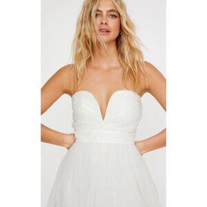 NEW! NASTY GAL STRAPLESS Tulle Bandeau RUFFLE Hem Midi Dress White SZ 6