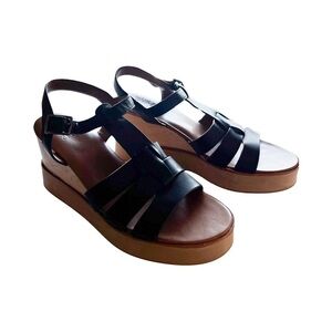 NEW NATURALIZER Barrett Wedge Leather Sandals Black Sz 9.5