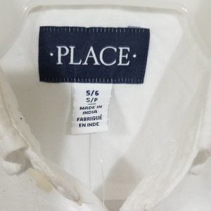 Children's Place casual long sleeves button up/down. Suitable to wear with a suit or a clip- on neck tie with a pair of chinos and loafers. Little boy's. Size 5/6. Color: White. NO SMOKE, NO PETS, NO BUGS ENVIRONMENT.
