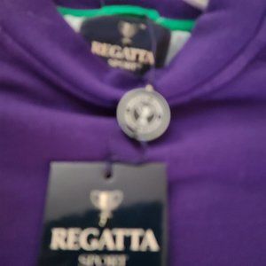 NEW WITH ORIGINAL REGATTA SPORT TAGS 100% COTTON AND MACHINE WASHABLE SWEATSHIRT, SIZE M. REGATTA SPORT IS A WELL KNOWN CANADIAN COMPANY ALTHOUGH THIS ITEM WAS HONG KONG MADE. IT HAS THE ATTRACTIVE EMBROIDERED REGATTA SPORT BEACH CLUB POLO SEAL. THE TAG INDICATED COLOR IS IRIS WHICH IS A FASHIONABLE SUMMER PURPLE SHADE. THE SHIRT ALSO HAS AIR VENTS ON THE UNDER ARMS FOR GREATER COMFORT AND AIR VENTALATION, A TRUE SIGN OF QUALITY AND DESIGN. ALTHOUGH I INDICATED MENS. I NBELIEVE THAST IT IS UNISEX USE.