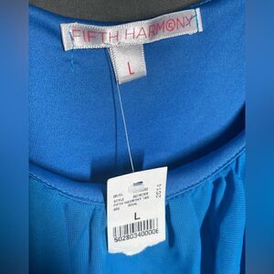 Blue & Black Fifth Harmony Bodycon Dress Fitted skirt with a flirty, flattering blue ruffle top, top is a chiffon look, spaghetti straps, fitted skirt