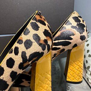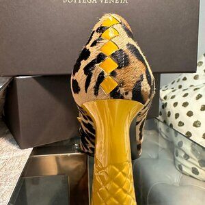 **NEW** NIB BOTTEGA VENETA Leopard & Marigold Pony Calfskin Heels Size 37.5