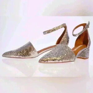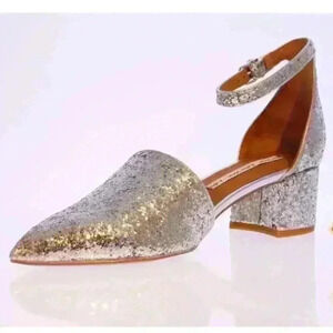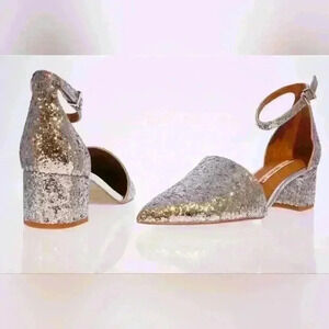 NEW NIB & Other Stories Women's Silver Glitter Block Heel Dress Sandal $125