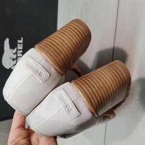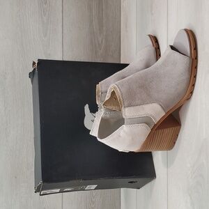NIB Sorel Gray Suede Peep Toe Heeled “Nadia Ankle Boots
