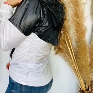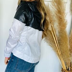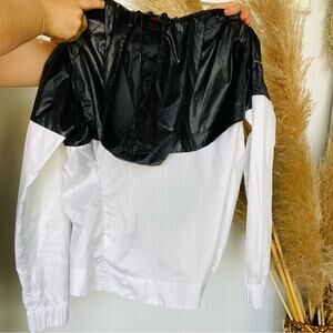 NEW NIKE Black White Colorblock Solid Windbreaker Jacket Hoodie Hood Pockets S