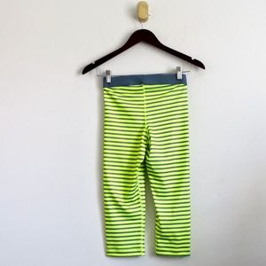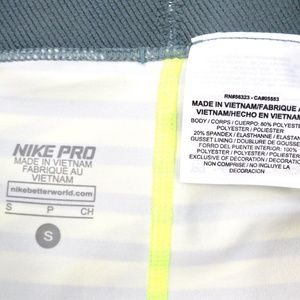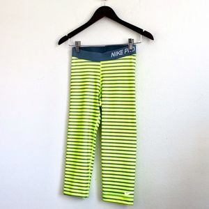 NEW! NIKE PRO Cropped Capri Leggings Striped Neon Yellow Gray Womens SZ S