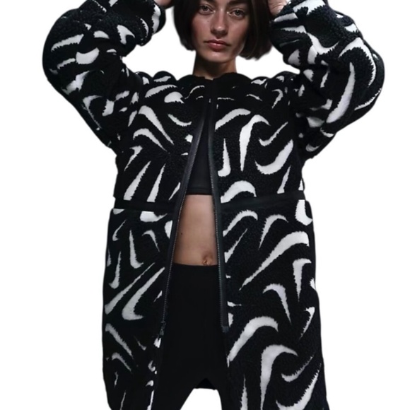 NEW WITH TAGS!!! FUNCTIONAL OUTERWEAR PERFECT FOR TRAVEL, ACTIVE WEAR AND CASUAL OCCASIONS.MADE OF 100% POLYESTER THE OVERSIZE JACKET FEATURES A ZIP CLOSURE AND POCKETS PROVIDING WARMTH IN THE WINTER,FALL AND SPRING WHILE ADDING A MODERN TOUCH WITH NIKE SWOOH PATTERN.