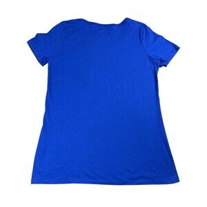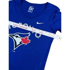 This product is a genuine merchandise item featuring the Toronto Blue Jays baseball team, officially licensed by Nike. The women's medium t-shirt is in the official team colors of blue and is perfect for fans of the Major League Baseball team. Made in Honduras, this shirt is a stylish and comfortable way for supporters to show their team pride during the regular season games.