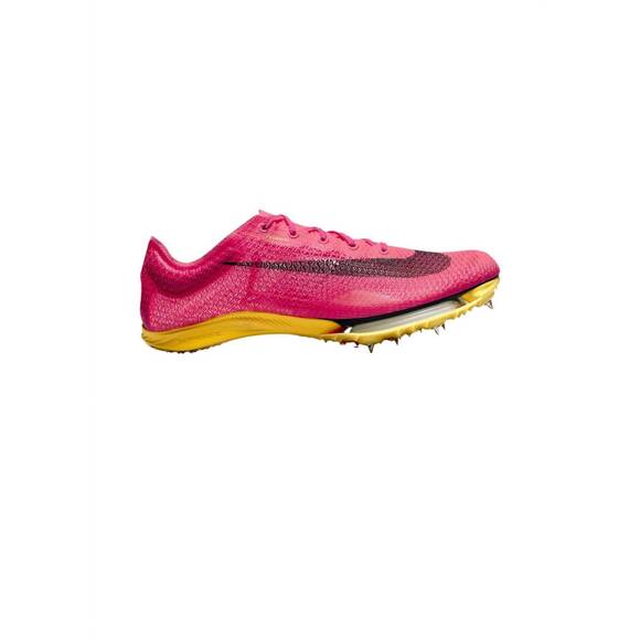 - Description: Introducing the Men's Air Zoom Victory Track & Field Spike Shoes by Nike, a striking choice in Hyper Pink, Black, and Laser Orange designed for peak performance. The shoes feature a textile upper with fabric lining, combined with a synthetic rubber sole for optimal grip and support across 800 to 5,000-meter runs. The innovative AtomKnit Flyknit fabric ensures a lightweight, contoured fit, while the removable spikes enhance traction based on data from hundreds of runners. Ideal for athleisure and game day occasions, these shoes embody Nike's relentless pursuit of excellence.