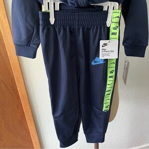 NEW NIKE sz 24M Navy Blue Boys Zip Up Track Jacket Pants Set Green Trim