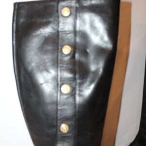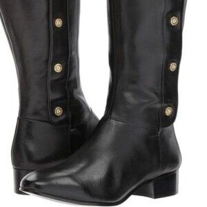 NEW NINE WEST $170 TALL CREYAN LEATHER GOLD ACCENT BLACK BOOTS SZ 6.5