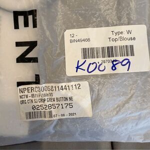NEW! NINETY PERCENT Organic Cotton Crop Crew Button Neck Top Pebble OverSized XS
