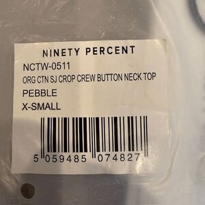 NEW! NINETY PERCENT Organic Cotton Crop Crew Button Neck Top Pebble OverSized XS. Boxy fit. This item is new boutique and still in manufacturers polybag. Brand New and Excellent condition. See photos for details and unstretched measurements. Shop my closet for even more NWT Designer Apparel and quality preowned apparel and bundle multiple items for discounts and one shipping fee! Ethical fashion brand Ninety Percent's long-sleeved crop top is an easygoing piece with seasonless appeal. It is crafted from sustainable organic cotton for an ultra-soft feel and styled with a casual crewneck and triple-button placket. • Organic cotton jersey