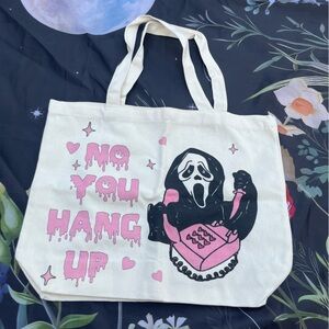 NEW NIP "NO YOU HANG UP" Pink SCREAM Spooky Horror Movie S/M? Canvas Tote Bag