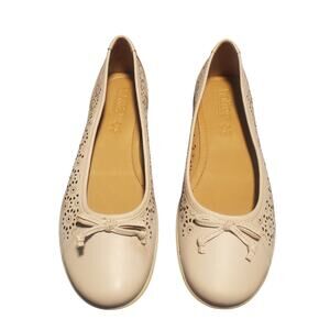 NEW NO BOX Hotter Precious Size 9 Beige Leather Laser Cut Ballet Bow Flats FLAWS