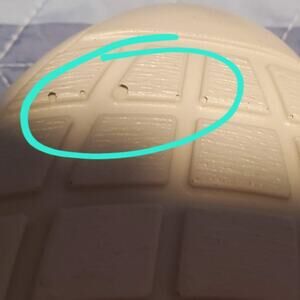 Front of shoes has a scuff and a few other spots are noted. Please see circled areas. No major flaws, these were stored and never worn.