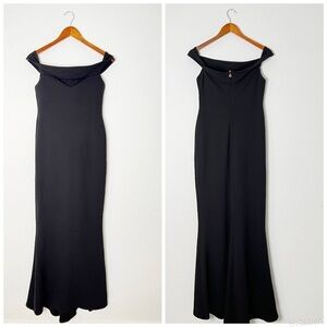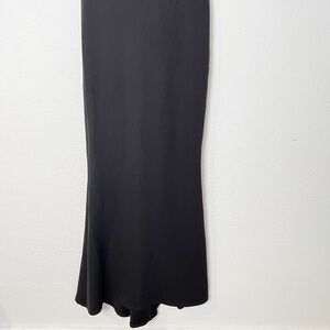 Stunning form fitting gown with under bust cutout. Made with classic scuba crepe, fully lined in soft jeresy. Invisible zipper at center back with rose gold Nookie puller. Padded bra cups.