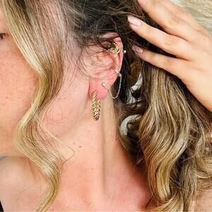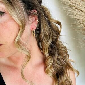 NEW NORDSTROM REVOLVE 10kt Gold Ball Slim Band Twisted Hoops Earrings Jewelry