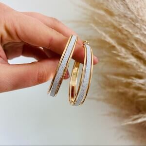 NEW NORDSTROM REVOLVE Gold Sparkle Glitter 50mm Hoop Double Earrings Jewelry