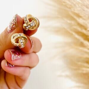 NEW NORDSTROM REVOLVE Gold White CZ Knot Twist Rope Studs Earrings Jewelry 9mm