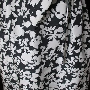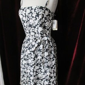 NEW dress with partial hang tag attached...lovely black and white floral silk dress ...lined with zipper....BUST: 18"...WAIST: 16"...TOP TO HEMLINE: 33"